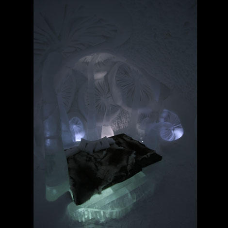 Liliya has designed and sculptured three rooms in the Ice hotel in Sweden. In the 2008/2009 season the room she created was called “Mush-Room,” which is a reference to Alice in Wonderland’s fairy-tale world.